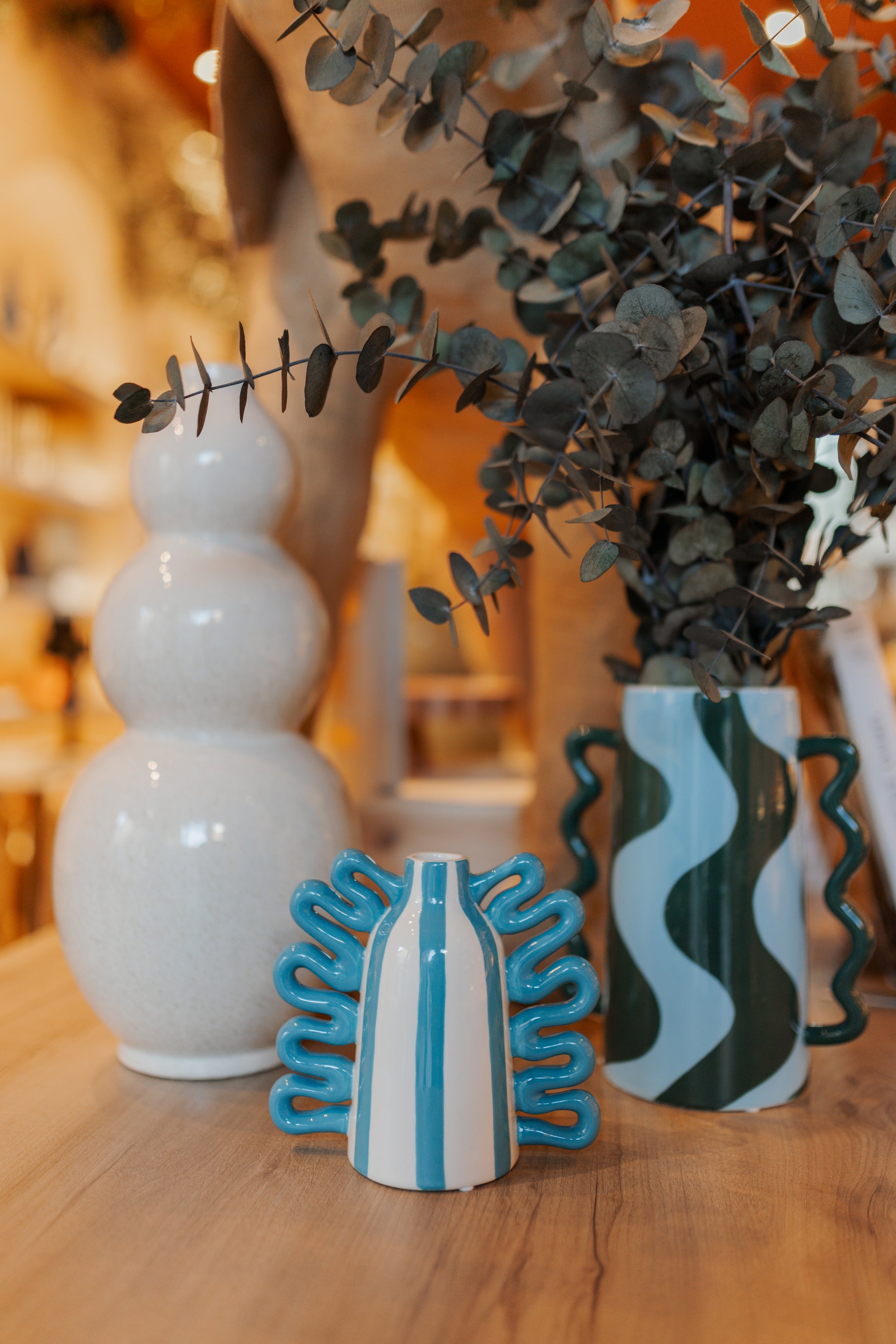 Jarrón de cerámica en formas redondas en color hueso. Con flores o sin ellas, le aportará un toque de sofisticación a tu hogar.